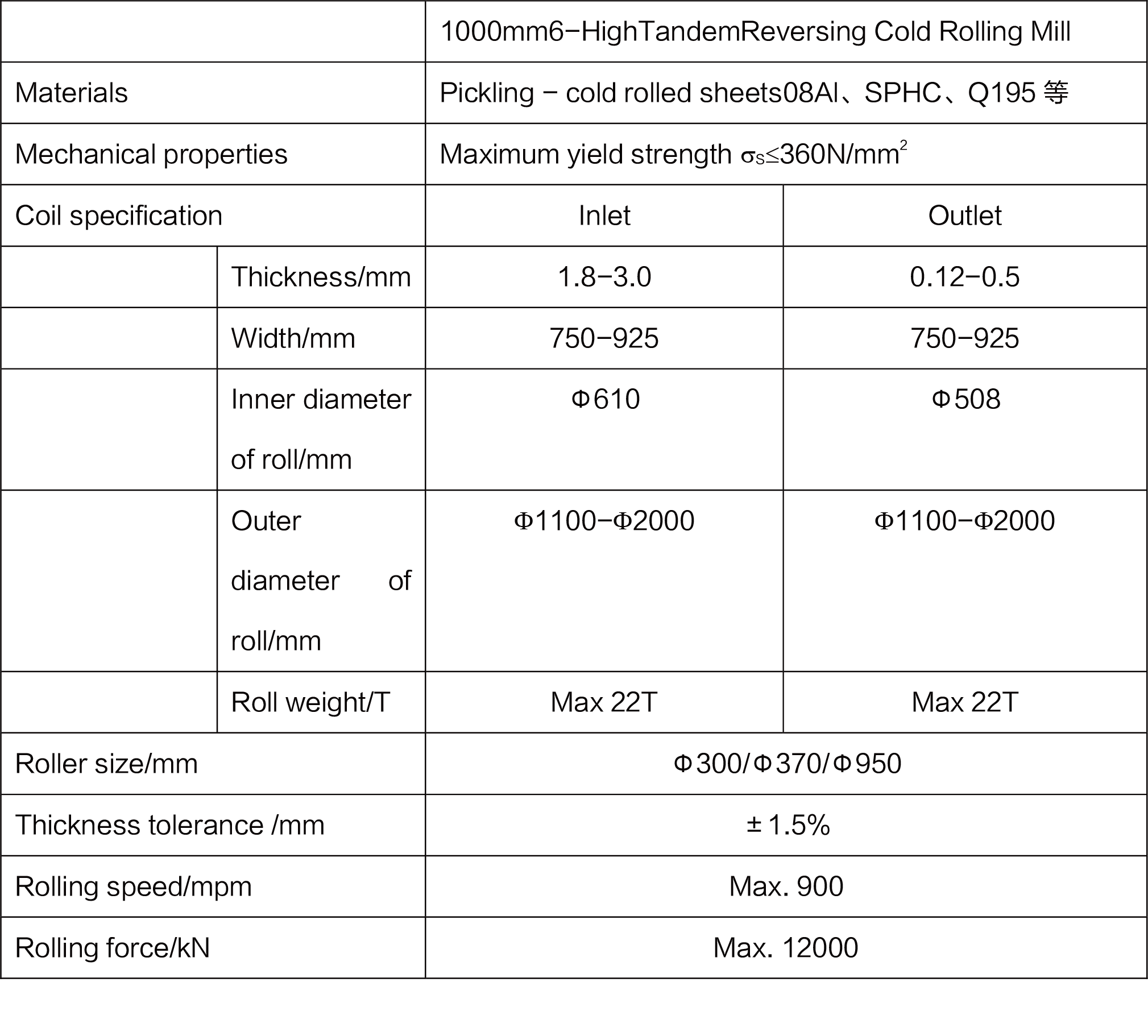 Shandong Shenglong 1000 rolling mill is equipped with high-power main motor and high-tension coiler. The raw material with thickness of 3.0mm x 925mm is steadily rolled for 6 passes to produce the finished product with thickness of 0.12mm x 925mm without intermediate annealing. Therefore, the production cost is greatly reduced by customers. The project is running well at present.